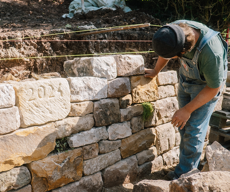 Im Praxisteil bearbeiten die Teilnehmenden Steine und setzen erste Mauerabschnitte um. Zudem werden zentrale Aspekte wie Stabilität, einfache Dimensionierung und Entwässerung anschaulich vermittelt.